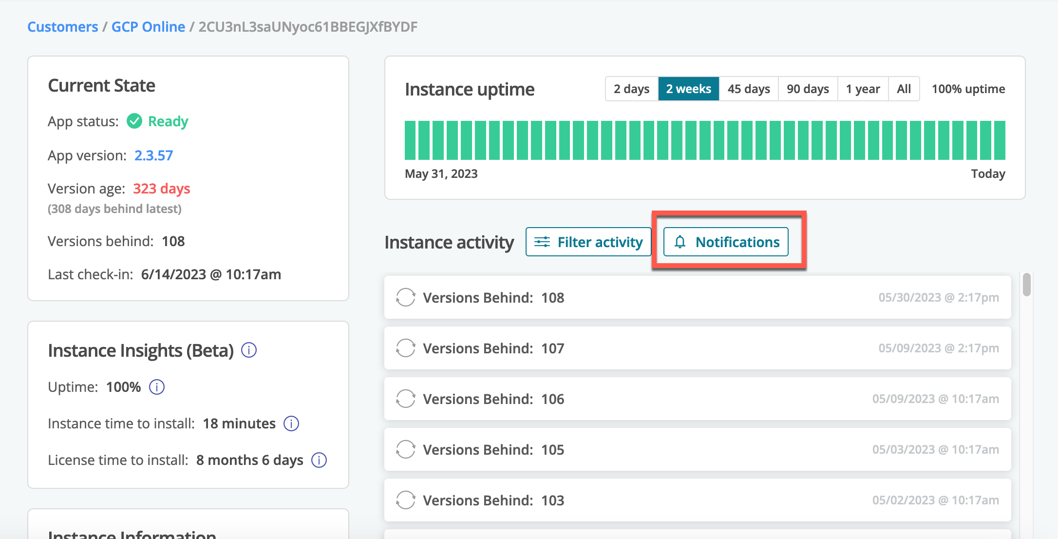 1. Go to Applications > Customers, and click an active customer instance that you want to receive notifications for.